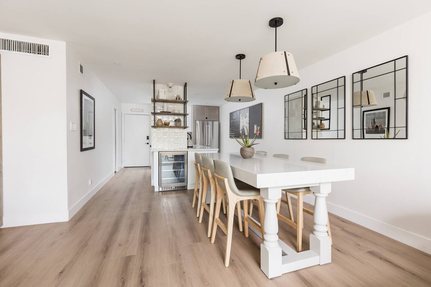 This luxury condo is equipped with a fully stocked kitchen with everything you'll need. Coffee maker, Keurig, blender, microwave, and other essentials. Large refrigerator and a separate beverage fridge for all of your food/drink stocking and cooking needs. The living room has brand new furniture with a huge 75” Flat Screen TV with expanded cable channels, and full streaming channel access. Beautiful Dining island with seating for 6. A great place for dining in or to play one of the many games available in the unit. Dual Master Bedrooms each include brand new Tuft & Needle memory foam mattresses with additional mattress toppers for perfect firmness. Fully remodeled Bathrooms have oversized showers with new plumbing, new fixtures, and quartz counter tops. [TPT License # 21404242]